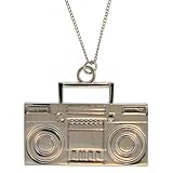 [if Often imitated, never duplicated! Our perennial best selling 1980's style Boombox necklace! Sure you've seen it in a multitude of publications! Rhodium plated base metal Lead Free Nickel Free Made in USA]